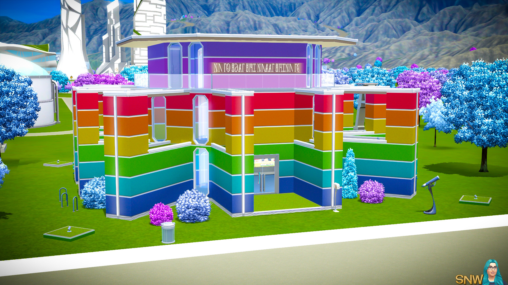 Het Regenbooshuis is perfect voor Sims die van vrolijke kleurtjes houden, of wellicht voor Berry Sims? Hoe dan ook is het een blikvanger voor Oasis Landing!