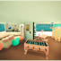 Boven is er een kleine badkamer aanwezig, een grote slaapkamer voor een koppel, een grote slaapkamer voor een Sim (kind of tiener), en als laatste nog een babykamer. Er is daar nu roze behang, maar dat kun je gemakkelijk veranderen in iets anders als je het roze niet leuk vind! De overloop en de babykamer hebben allebei toegang tot balkonnetjes!