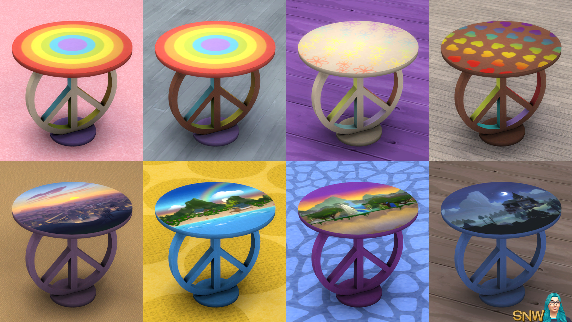Ik begon met dit bijzettafeltje in de zomer van 2017. Ik was best wel tevreden met het resultaat. En er waren toen al 40 kleuropties. Maar, ik wou een heel grote Hippie set maken voordat ik het zou gaan uploaden. Alleen toen kwam er iets tussen waardoor ik de rest van de items niet kon afmaken (was er dus wel mee bezig). En vervolgens heb ik het tafeltje nooit meer geupload! Ik vroeg pas geleden aan mijn volgers op mijn Nederlandse Twitchkanaal en Instagram om suggesties. En met de feedback die ik heb ontvangen, heb ik nog 24 kleuropties gemaakt haha! Oeps... Dus dat betekent dat er nu in totaal 64 kleuropties zijn.