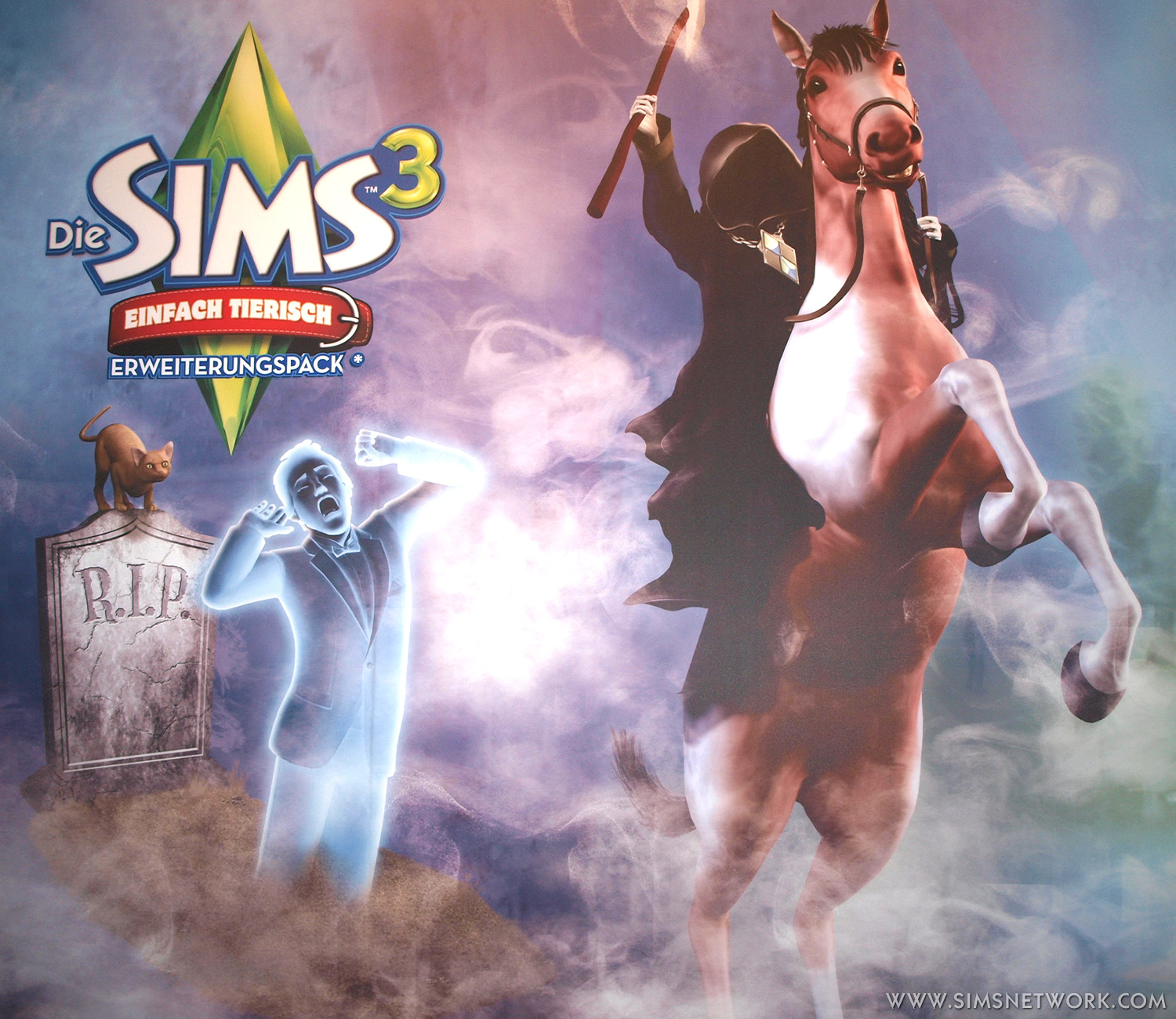 Waarschijnlijk weten jullie al dat we uitgenodigd waren op de behind-closed-doors Sims presentatie op de Gamescom. Graham Nardone heeft ons een leuke demo getoond van De Sims 3 Beestenbende op de PC! Helaas mochten we hier, zoals ik in mijn andere artikelen ook al had genoemd, geen foto's maken. Vandaar het gebrek aan beeldmateriaal in dit artikel. Ik heb wel wat afbeeldingen erin gezet. Dit zijn foto's gemaakt van artworks op de beursvloer zelf.