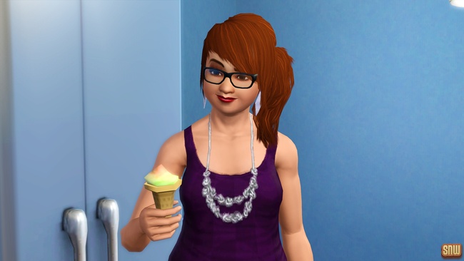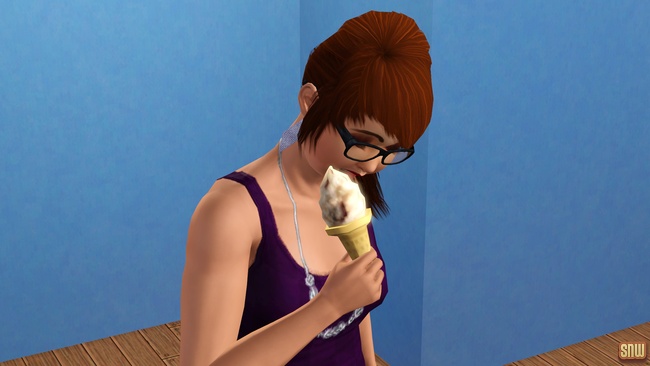 Als je eenmaal hebt gekozen om ijs te maken, zal je Sim enkele ingrediënten in de machine doen en dan begint de machine alles te mixen, terwijl je Sim wacht. Ik hoop dat ik dit goed heb, maar ik heb het idee dat de machine ijs in willekeurige kleuren maakt. Ik heb wit/creme ijs gezien, groen/roze ijs, wit met bruine stukjes, groen ijs en nog wat andere kleuren. En dat brengt me gelijk op het volgende punt.