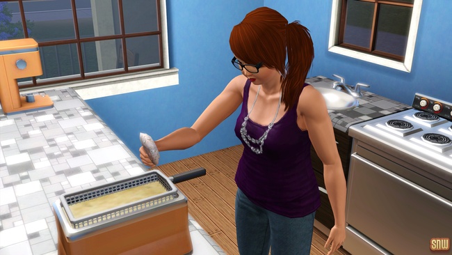 Een Sim kan zich best wel goed pijn doen met de friteuse. Voor zover ik weet kun je er niet dood aan gaan, maar mijn Sim deed zich enkele keren flink pijn tijdens het bereiden van gefrituurd eten. Ik vraag me af of dit voor Sims met een hogere kookvaardigheid anders is...
