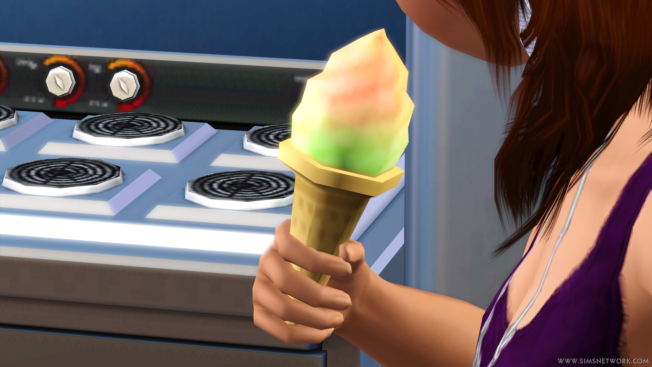 Om eerlijk te zijn vind ik het idee van gefrituurd ijs ranzig, en iets gefrituurds in mijn ijs vind ik net zo erg. Maar mijn Sims zijn er echt dol op1 Ik had graag wat meer combinaties gezien met andere gerechten uit de gewone oven met ijs. Maar ja we kunnen niet alles willen…