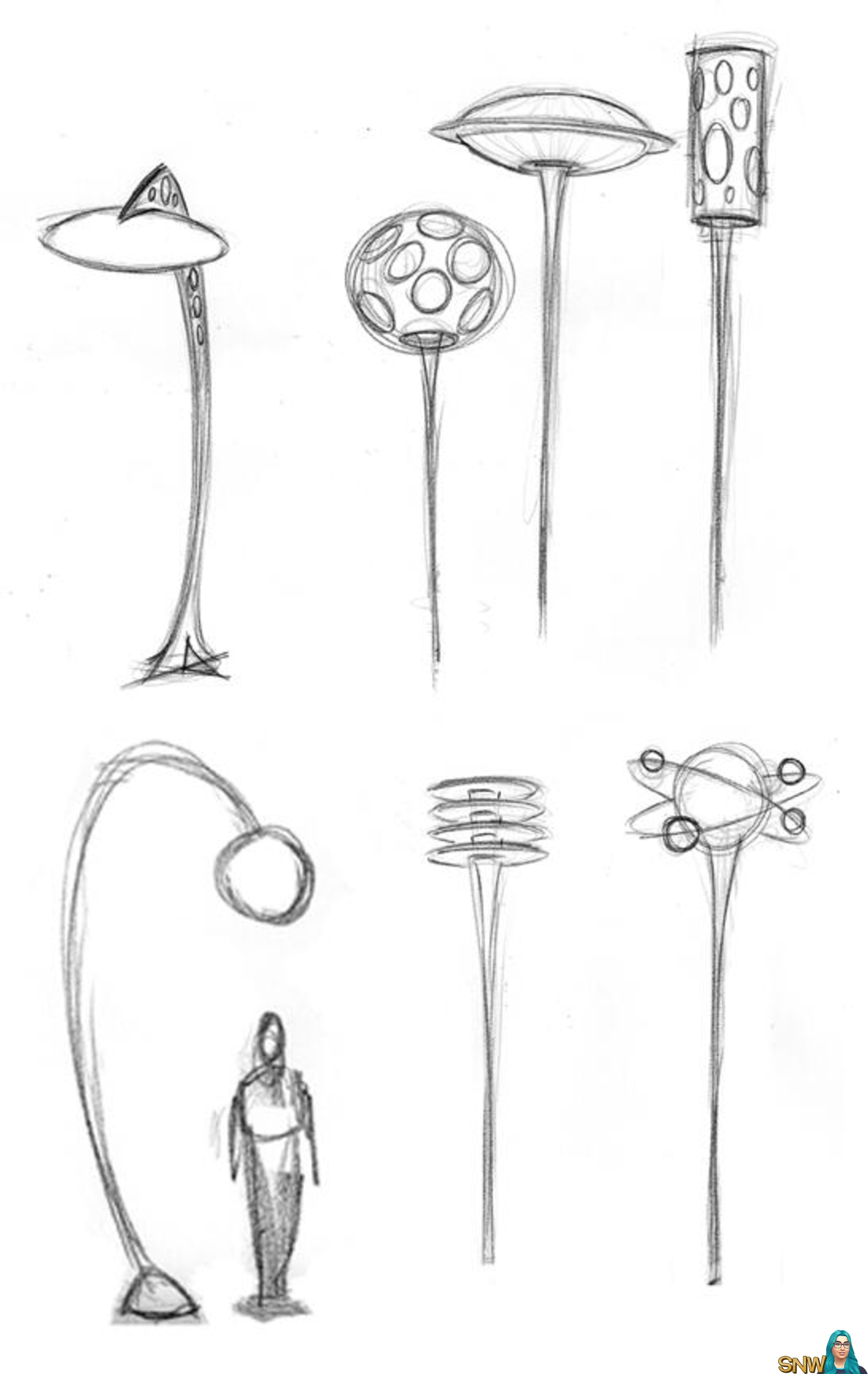 Last one for today - concept art featuring possible outdoor street lamps for the atomic age theme in The Sims 2 Pets.