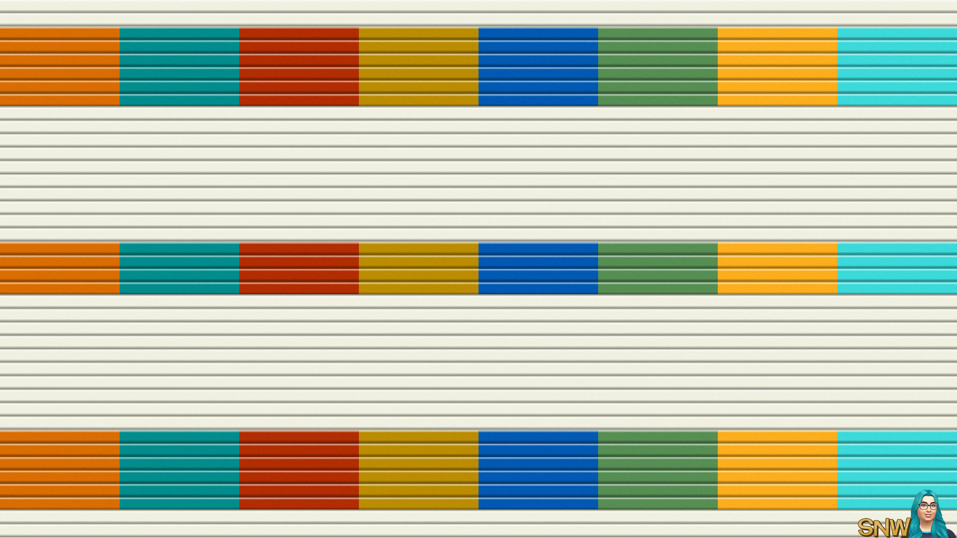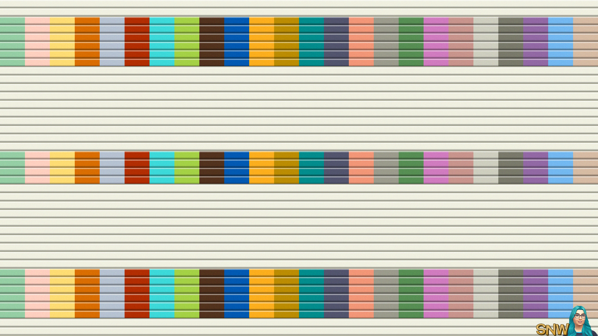 I made two styles. A flat/simple style, and a more bold/bevel style. I couldn't choose, and the followers on Twitter and Facebook liked both versions. That's why I decided to create both! Each style comes in 5 variations. This specific set of walls has 24 colour swatches to choose from!