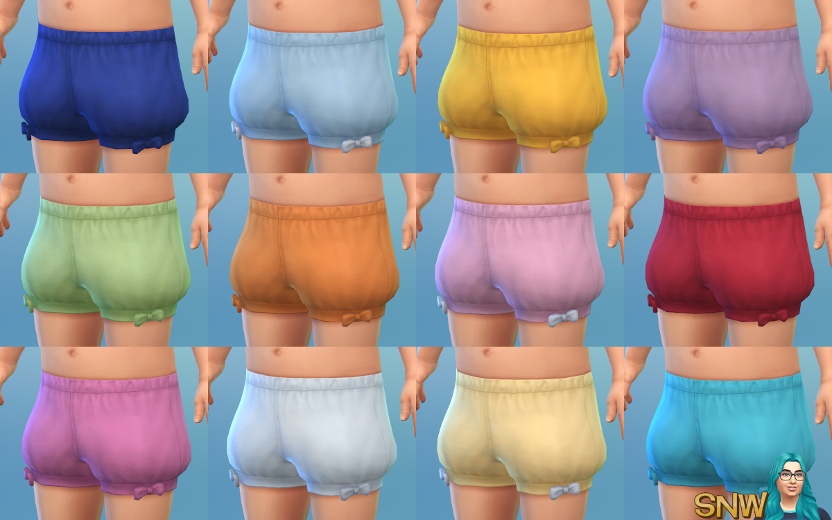 Here are 12 shorts with little bows on the side. All of them in plain colour. No prints.