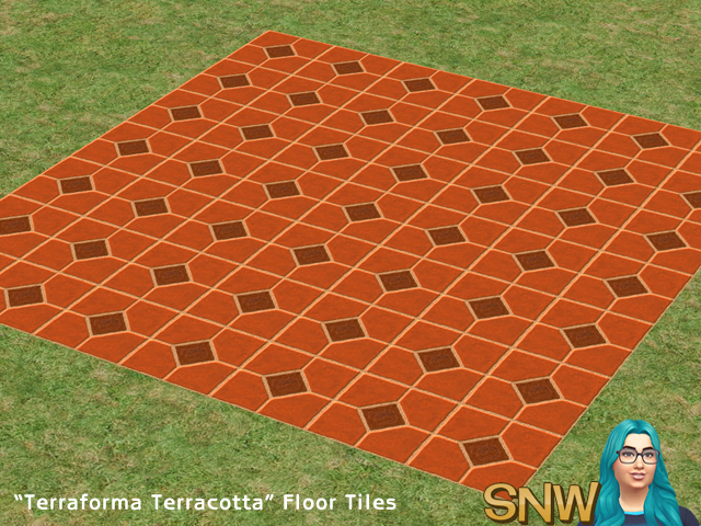 Because I went through all the trouble of re-creating the blue Il Perrinni Italianate tile, I figured it couldn't hurt to create a few more colour options. So I did! I think I made a few nice colour schemes to choose from. You can combine plenty of them. Using the CTRL + F function in-game, you can make really nice floor patterns with them too (give it a try sometime!)
