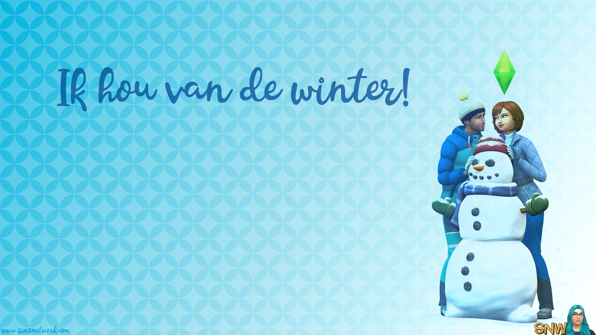 Dit is de Wintervariant. Er zijn 3 variaties; een simpele zonder tekst, eentje met De Sims 4 Jaargetijden erop, en eentje waarop Ik hou van de Winter staat!